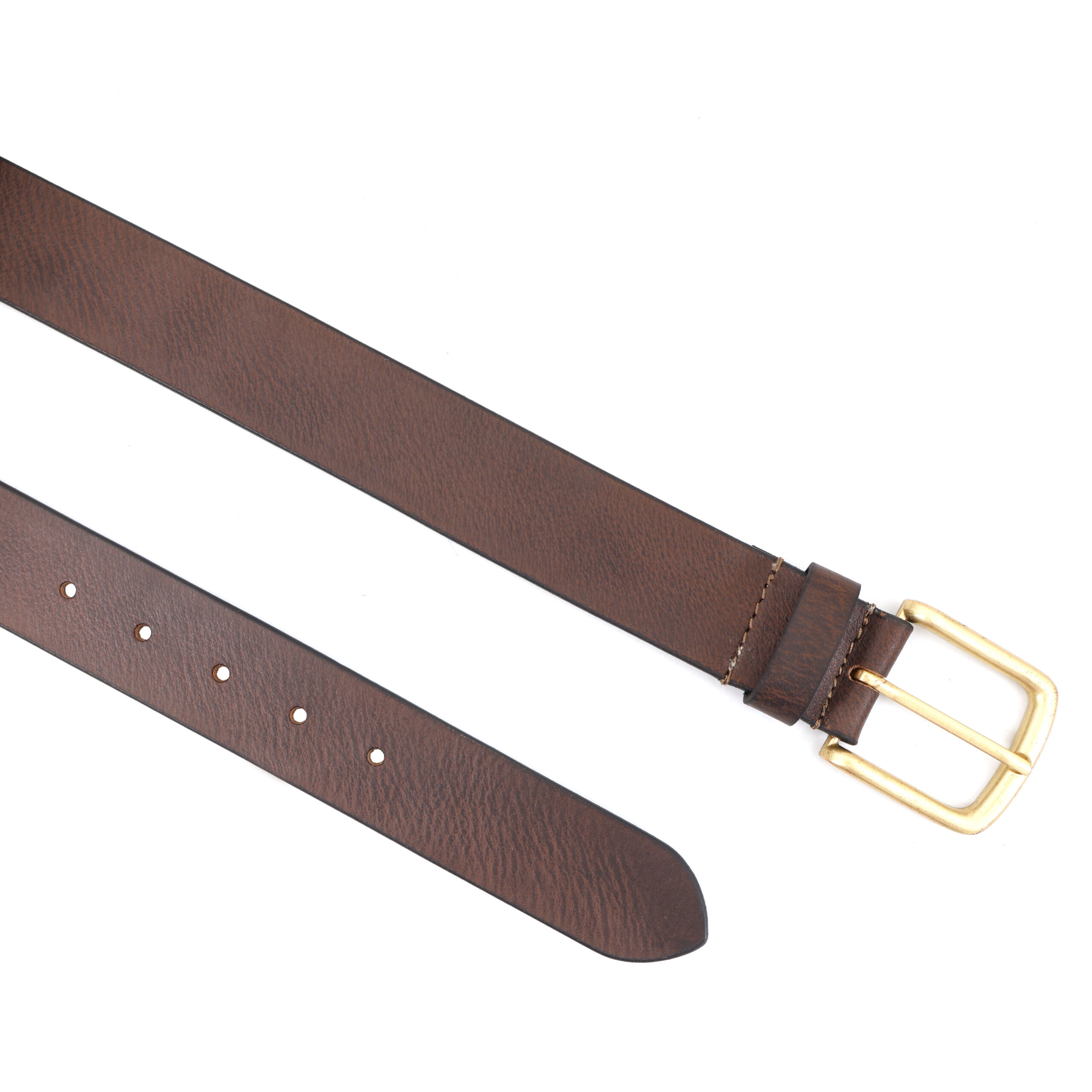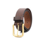 Men’s Brown Western Style Profile Leather Belt – 35 mm | Golden Buckle