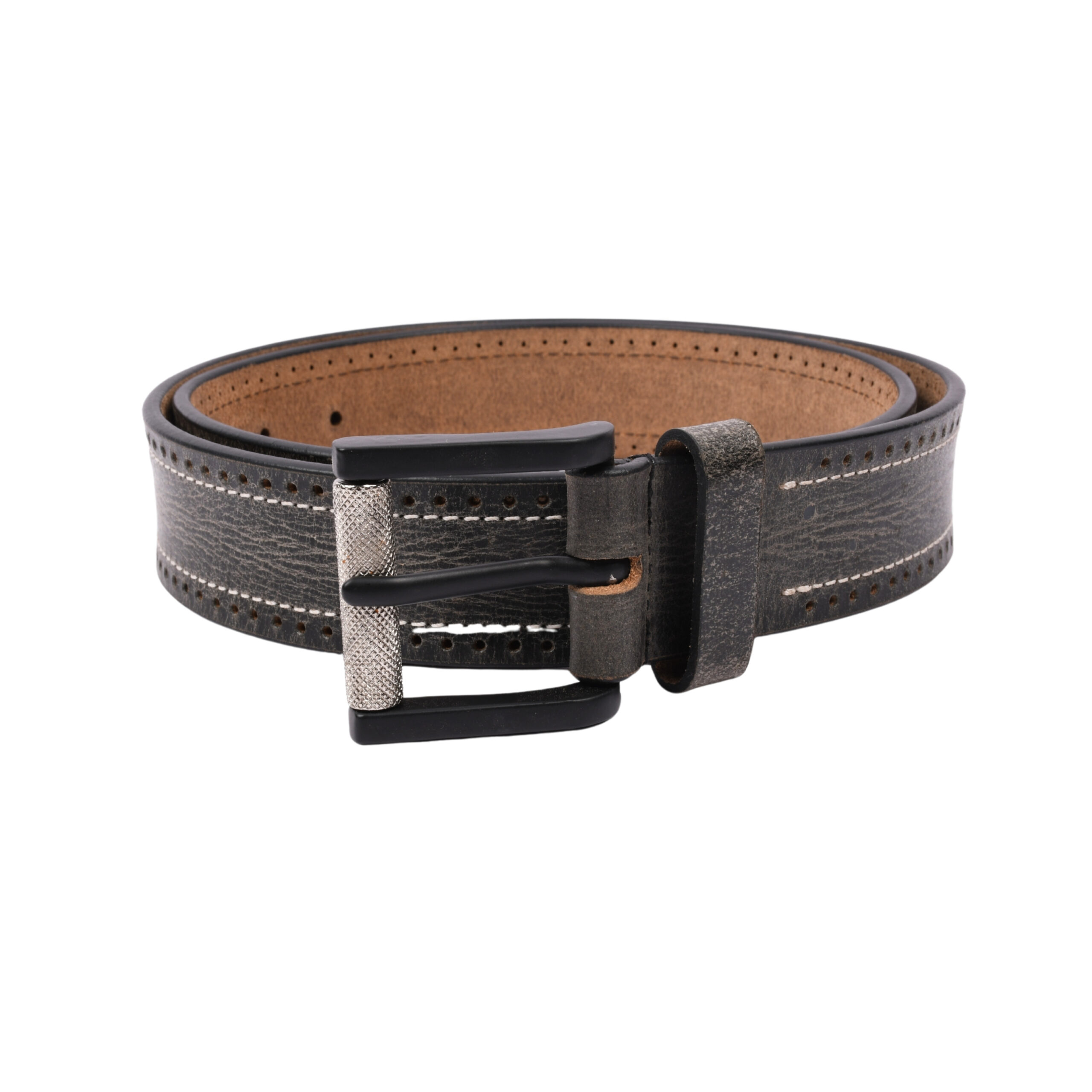 A bold and refined designer leather belt for men, crafted from vegetable-tanned full-grain leather using eco-friendly, chemical-free processes. Finished in classic black with clean stitched edges for added durability, this 40 mm belt features a black powder-coated roller buckle that delivers a modern, masculine look with smooth everyday functionality—perfect for premium casual and smart-casual styling.