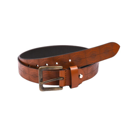 Men’s Tan Laser-Designed VT Grain Leather Belt – 35 mm | Brass Antique Buckle (Design Variant)