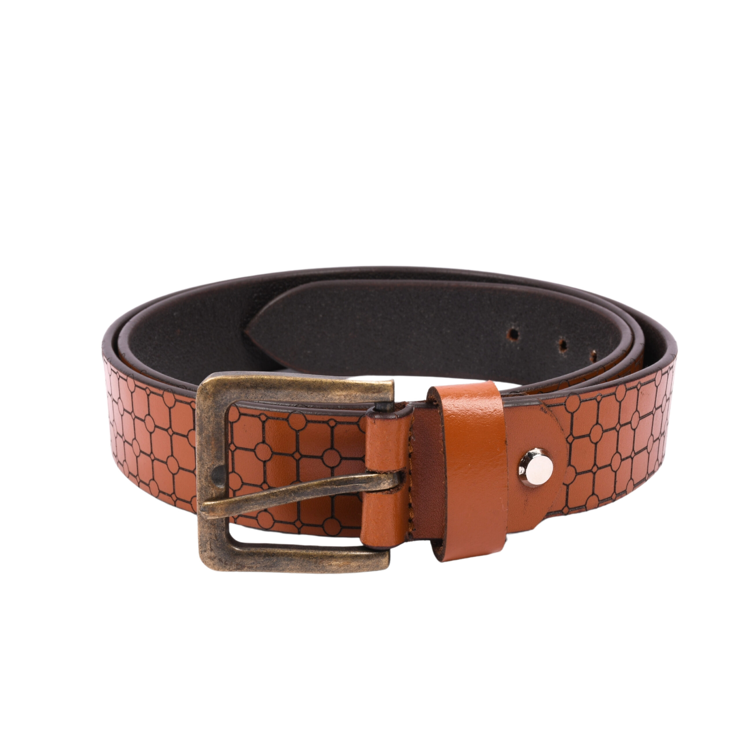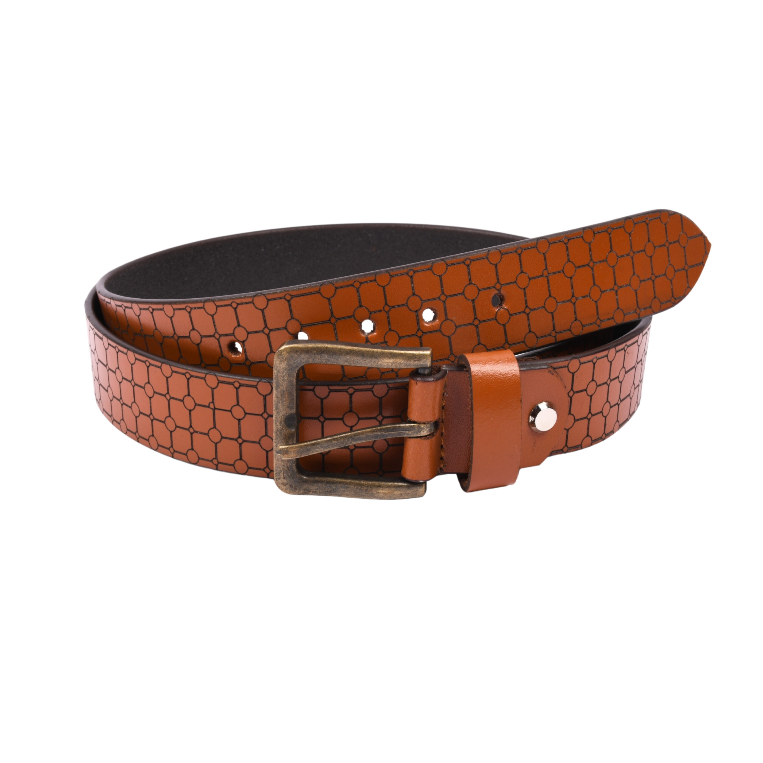 Men’s Tan Laser-Designed VT Grain Leather Belt – 35 mm | Brass Antique Buckle (Design Variant) ₹1,499.00 Original price was: ₹1,499.00.₹999.00Current price is: ₹999.00.