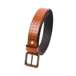 A premium men’s tan laser-designed leather belt, crafted from vegetable-tanned full-grain leather and finished with a new, distinctive laser-engraved pattern. Maintaining the same refined 35 mm width and 3.5 mm thickness, this belt is paired with a brass antique buckle for a classic yet contemporary designer look. Produced using eco-friendly, chemical-free leather processing, it’s ideal for premium casual wear and export collections.