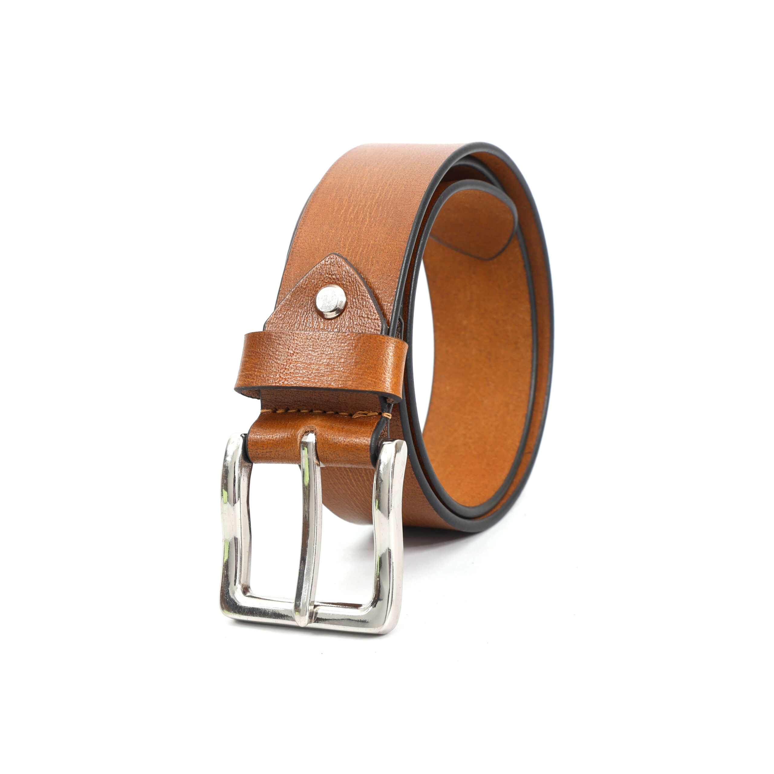 Home Formal Belts Men’s Tan Leather Belt – 40 mm | Heavy Nickel Buckle | Black Edges