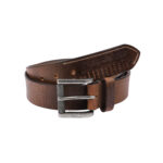 Men’s Brown Western Style Profile Leather Belt – 35 mm | Golden Buckle
