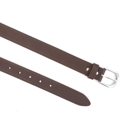 Men’s Brown Profile Leather Belt – 35 mm | White Stitch | Nickel Finish Buckle